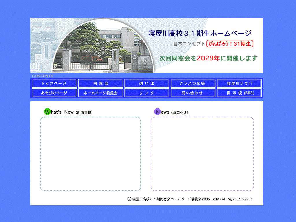 31期のホームページでは、個人情報保護への配慮から、ホームページのコンテンツ内およびサーバー上には同窓会にかかわる名簿等を一切置いておりません。